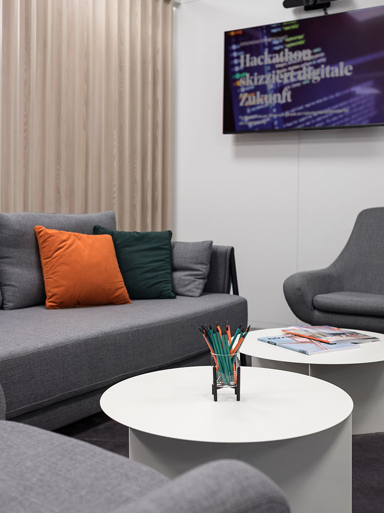 The central component of the campus is the spacious coworking area, which seamlessly transitions into the newly designed cafeteria. The open space design supports cross-departmental dialogue, strengthens collaboration in everyday work, and promotes a networked, agile corporate culture.
