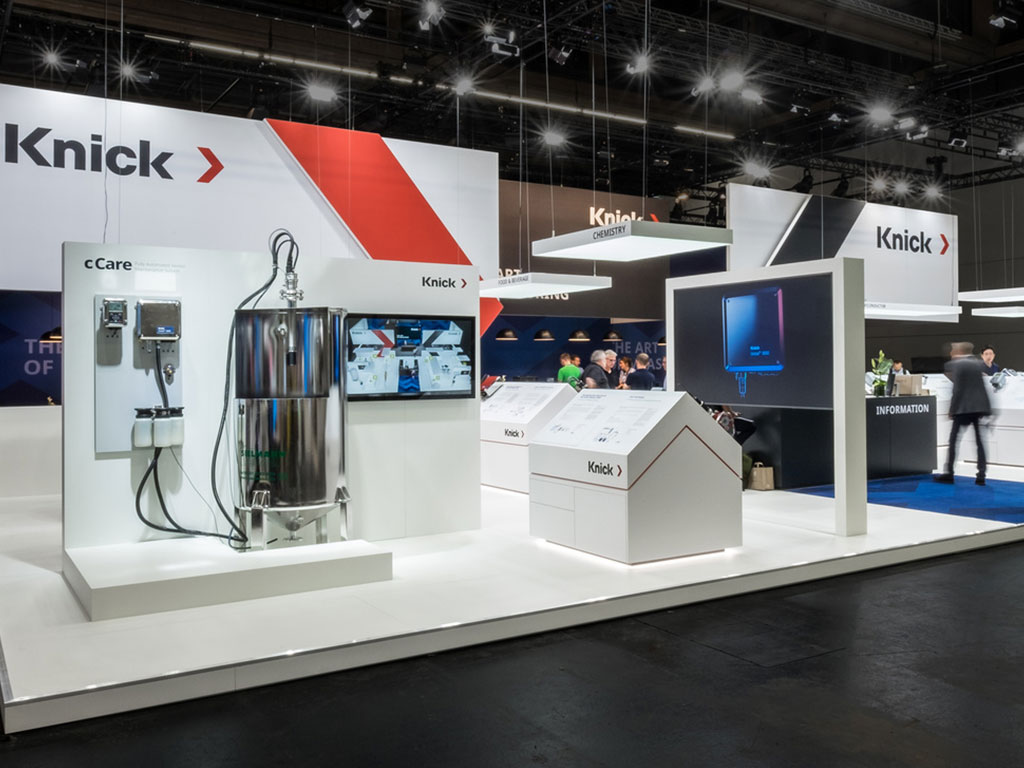 Under the exhibition motto “The Art of Measuring,” we developed a new, forward-looking exhibition concept for KNICK at ACHEMA. Spanning over 300 m², the traditional German company presented itself with a modern, strong brand presence. The modular stand concept has since been successfully implemented at various trade fairs.
