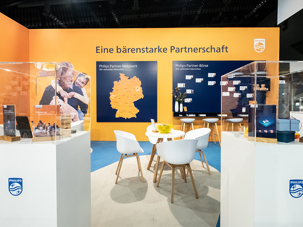 We are pleased to have supported Philips in the planning and implementation of their trade fair presence. The high-quality trade fair construction combines functional design with an elaborate media installation that impressively showcases products and innovations.