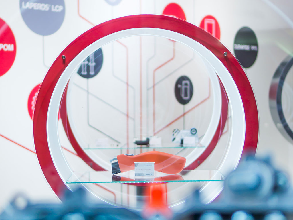 The technical components were presented in seemingly floating display cases. This special staging vividly demonstrated the diverse applications of the plastics and simultaneously served as a basis for discussion with potential partners and customers.
