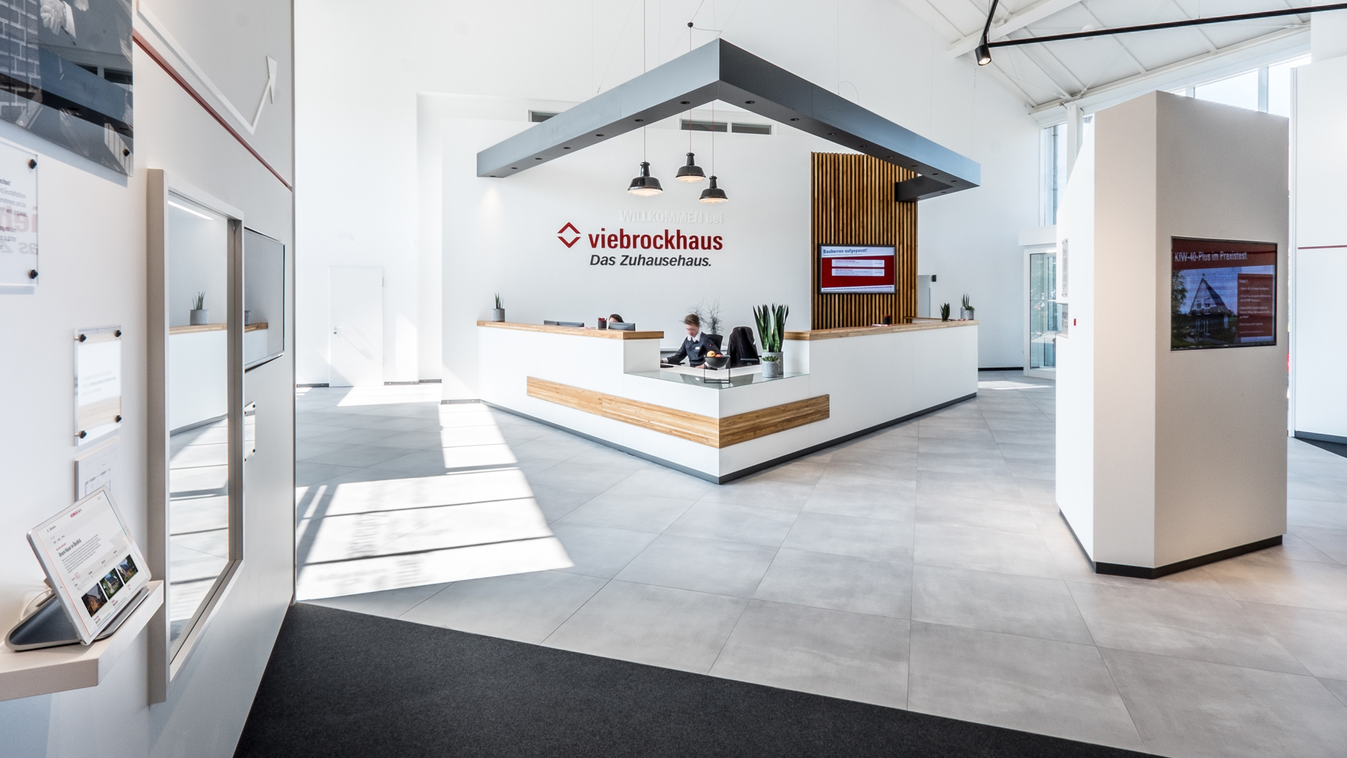 For Viebrockhaus, one of Germany’s largest manufacturers of solid homes, DIDID developed a forward-thinking concept for the new 1,200 m² selection center. Homeowners will find an impressive variety of materials and fittings here to customize their new home.